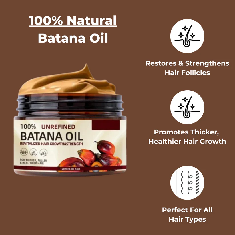 Organically sourced & Unrefined Batana oil is rich in essential nutrients like vitamin E, antioxidants, and fatty acids, promoting healthier, stronger hair and reducing breakage and hair loss.